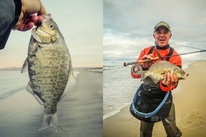 the water temperature was looming between 60 – 62 degrees  the weather last week was perfect for the long rod. high pressure system, blue bird skies, no wind, surf 1 to 2 feet, and corbina cruising and big winter perch on the chew. we fished tan and orange clousers in size 4 with some silver flash in them. dust off that fly rod and get out there, the beaches are pretty vacant in the mornings.  the swell came up a little over the weekend so check your local beaches for conditions. I received reports of corbina sightings were from santa monica to palos verdes, even in bolsa chica/huntington. we were not sight casting to these fish, we are just vicinity casting in areas where we would spot them. tight lines and a happy thanksgiving to everyone!