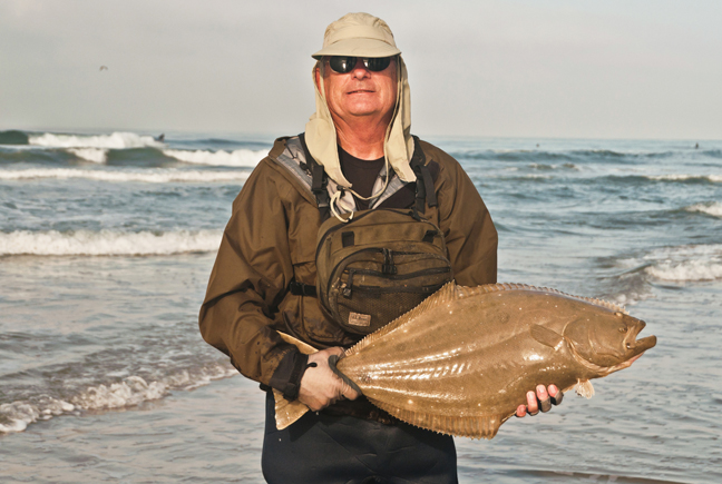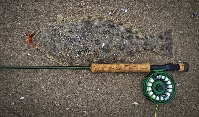 After watching all the fine haibut being caught in huntington beach on saturday’s one surf fly, i really got pumped up and decided to hit one of my favorite halibut holes in the south bay early sunday morning. I had hooked a nice halibut about a month ago in torrance that I dropped at my feet so I made sure this time, my hooks were sharp and went with straight 12 pound tippet. the fly i used was a red, orange and brown clouser tied on a #4 mustad. The hole I was fishing was almost exposed so I had to wait an hour or so, for it to fill in on the rising tide. Once It filled in I got two small halibut around 20 inches each to eat the fly, fair hooked and released. mission accomplished, one small perch later I called it quits and went home. i met a really nice guy name Mitch who watched me land one of my fish. I had heard there was a big perch landed around a month or so ago and totally by coincidence it was Mitch’s fish. It was a 17.75 inch perch that he got using a lucky craft anchovy lure. I asked Mitch if he had a pic and he sent me one on his iphone. We have had some really big fish in the surf this season, but this was the biggest perch I have seen this year! check it out!