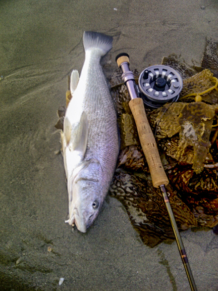 a fallen bean landed this morning by Santa Monica’s own, Bernard Yin on a clouser tied by yours truly…photo by Bernard Yin