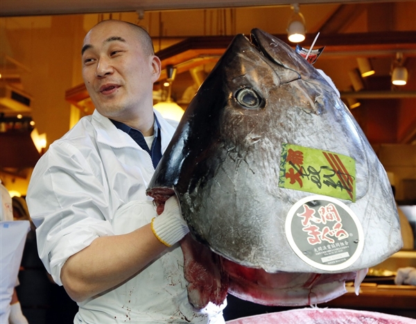 photo courtesy of Kimimasa Mayama / EPA. A bluefin tuna sold for a record $1.76 million at a Tokyo auction Saturday, say what?
