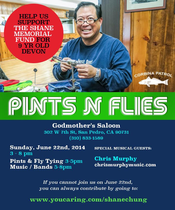 All money raised from this upcoming Pints n Flies event with support the Shane Chung memorial fund to help his 9 yr old son Devon get an education…Also I will dedicate next year’s One Surf Fly in Shane’s memory and all proceeds for our raffle will go to this fund! Thanks for your support!