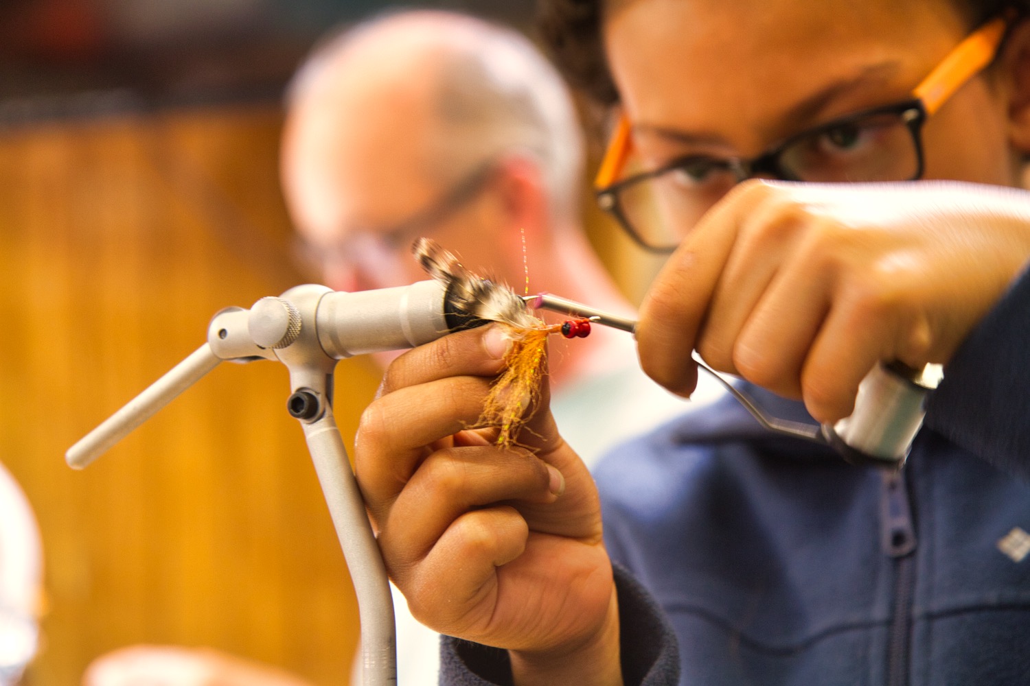 young Ali, who is a bright new fly fisher was crushing it and tying some beautiful flies for the surf. photo courtesy of Graham Day