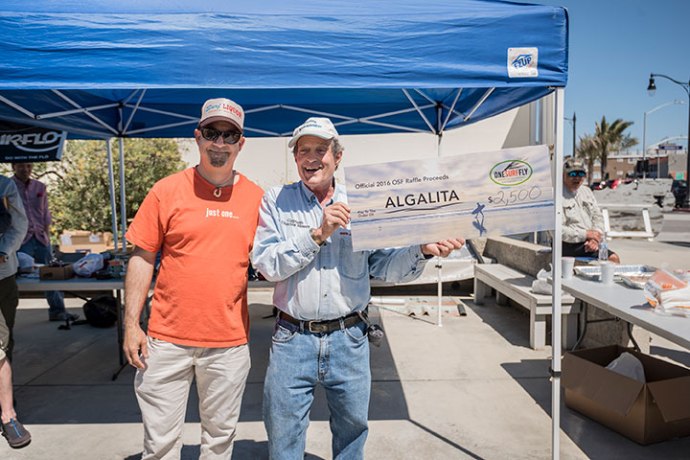 I can’t believe that it has been almost three years since the last, One Surf Fly which was held at Dockweiler State Beach in 2016. We had our raffle ceremony at the Redondo Beach SEALAB courtesy of our buddy John Whitaker, who volunteers working the sea bass pens. It was the grand finale for me and we were proud to hand Capt. Charlie a check for $2500. Me and my daughter also picked up plastic from the beach prior to the event and hand-made Charlie a plastic fish which he really liked! We had the honor of supporting Algalita, which was founded by Capt. Charlie Moore to help clean up the ocean. For those not familiar with Charlie Moore:
