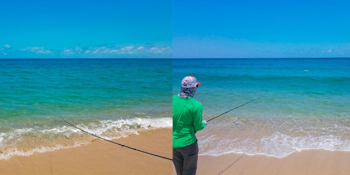 So we set out on the first day, the three of us on a ATV, loaded with two fly rods and a positive attitude. Searching and hunting endless white sand beaches for any signs of life. The first two fish came early, down the line from left to right, my bad side of course, so i jump off the ATV running to get way ahead of them, my line all messed up, wrapped around my tip. Jeff yelling to slow down and breathe, I regroup and make a good shot just ahead of the fish and immediately start stripping the fly, NO LOVE, unaffected, I run ahead of them like a sprinter doing a hundred yard dash and throw again, strip, strip and NO LOVE, this continued two more times until they turned out into deeper water. Scratching my head and completely winded, I looked down in defeat, thinking this might have been my only shots. I reran the tapes in my head to try to understand why the fish didn’t turn on my fly and the only thing I could think of was I was using an intermediate line with a light fly and didn’t let the fly sink long enough for it to be in their feeding zone. It is weird and hard to perceive the depth of water, it looks shallower than you think. The water was fairly deep even though it was only a fifty foot shot. Ok, live and learn, do better next time dummy!