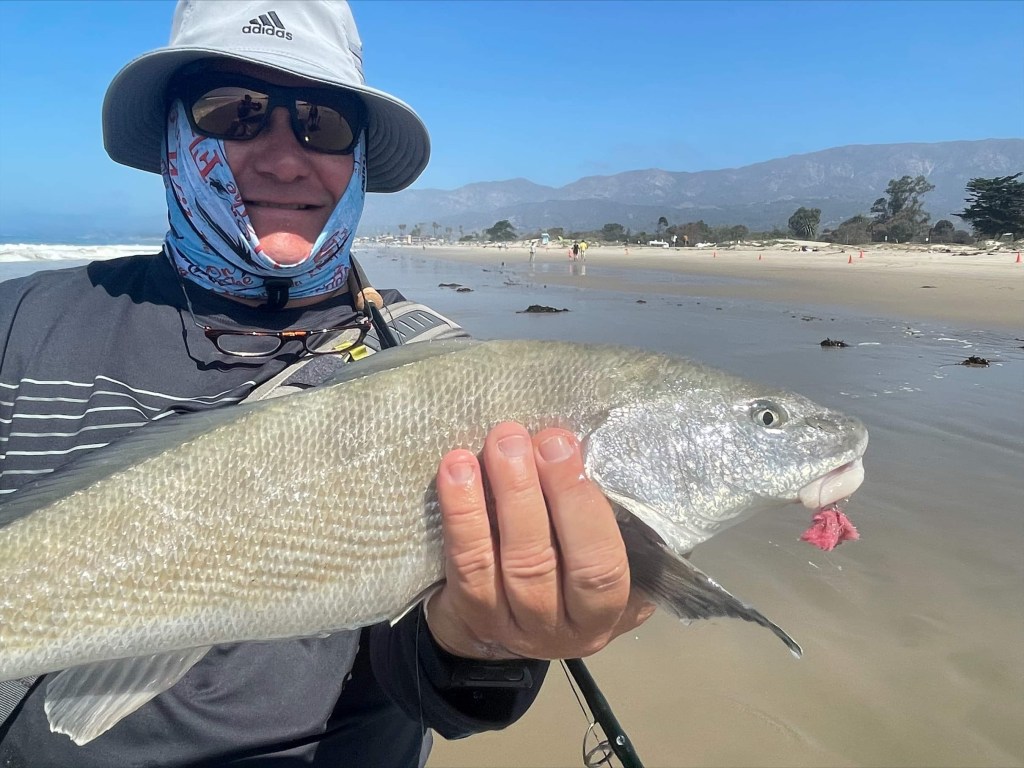 PS: Hats off to Kesley and Scott for taking a group of fly anglers out to the surf in good conditions to show them the corbina game. Take note that Sam’s fish was fair-hooked, (in the mouth) there are many fish showing up on instagram these days that are foul-hooked (me and the Corbina Patrol never take a grin and grip shot of a fouled fish, the fish has to eat the fly! That’s the challenge. ), it easy to foul a fish when they stack up in pods. Believe me, we all foul em, you can’t help it when you’re sight casting to groups. It’s a let down for me when that happens, not a celebration. This is a great accomplishment by Sam. His first fair-caught bean in the surf, it doesn’t get better than that. WTG dude! You have become an honorary member of the Corbina Patrol. – Al Q