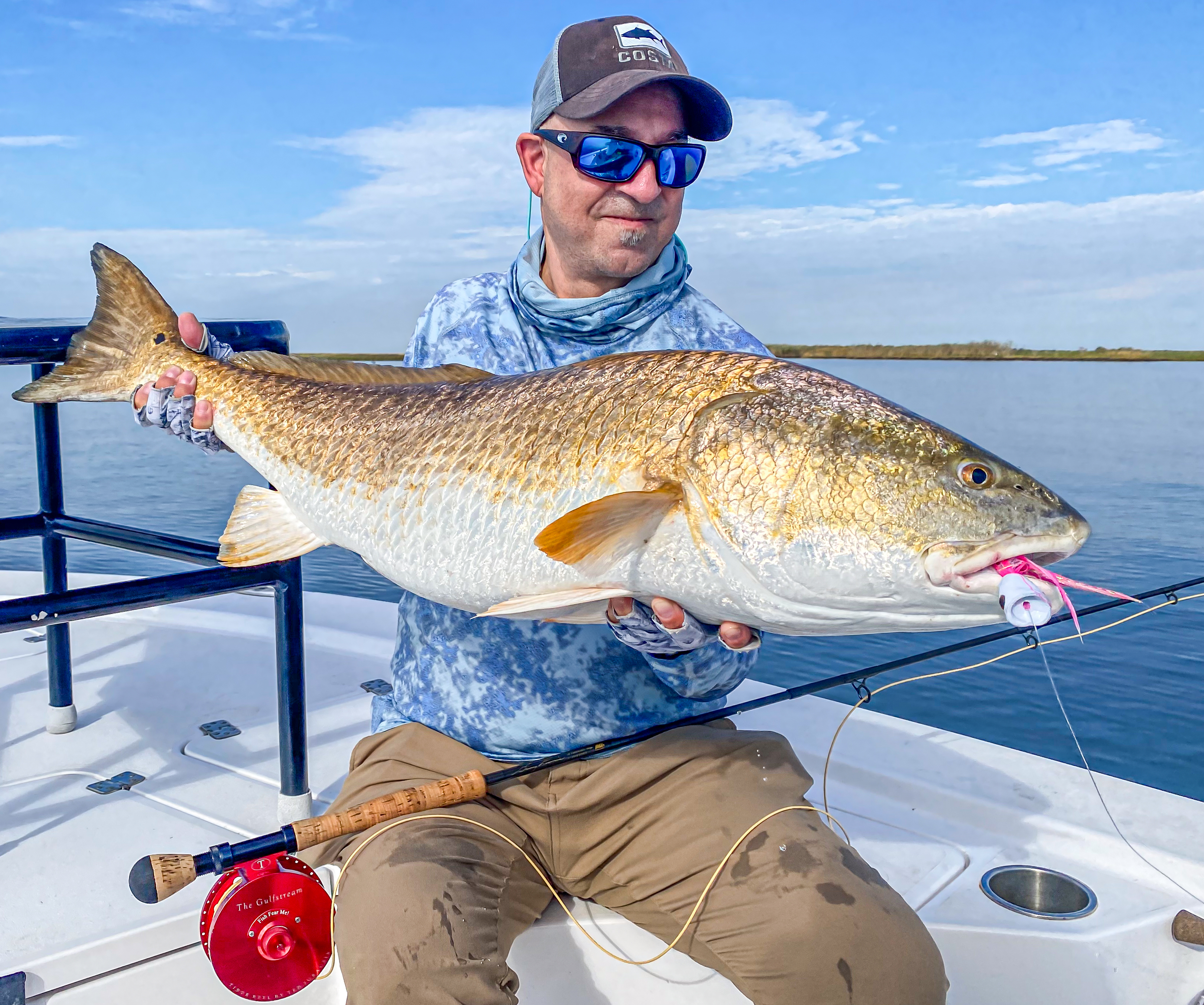 Last week I had the honor to accompany my buddy Bill Matthews back to Hopedale, Louisiana to fish a few days with Capt. Greg Moon. Our main objective was to spread Bill’s late wife Lori Matthew’s ashes out in the marsh for her final farewell. It was here Lori took her last trip with Bill and landed a giant redfish over forty pounds a few years ago before she fell ill. We honored her memory on the second day of our trip back in the marsh by playing a short video of Lori’s finest catches on Bill’s iphone as he sprinkled rose petals and her ashes over the water. It was an emotional moment, the last of the many places Bill fished with Lori and spread her ashes. We did have a fun time together on the first day, the wind was down and we threw surface poppers to giant redfish and jacks. I lucked out with my first sight-fished sheepshead right up against the marsh edge. Our other two buddies Rex Ito and Don Shaul accompanied us on this short but sweet trip and got a few personal bests as well. We all stayed at the historic Dogwood Lodge, a converted US coastguard vessel moored along the bank of Hopedale harbor. I love Louisian, I feel very close to this town visiting it over twenty times while my old roommate live in New Orleans, it feels like my second home. Great food and great people. –Al Q