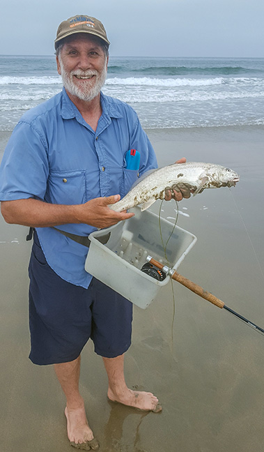Michael Schweit, past SWCFF president with his first faired corbina. WTG!