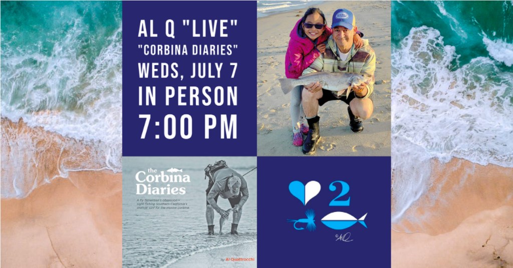 I will be safely signing books outside in the parking lot of the Fisherman’s Spot in Van Nuys this coming Saturday, December 12th between 11am and 1pm. Please bring your mask! Its a great opportunity to pick up a signed copy of the Corbina Diaries. My first self-published book on DIY beach sight casting. I will have some coasters and corbina patrol decals for sale as well. Hope to see some of my friends and fellow fly fishers out there. Happy Holidays!